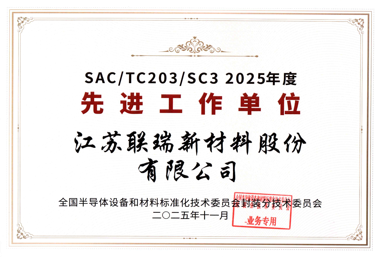 聯(lián)瑞新材積極參與標(biāo)準(zhǔn)研制項(xiàng)目,2025年度成功發(fā)布《集成電路封裝用低放射性球形氧化硅微粉》和《集成電路封裝用球形氧化鋁微粉》兩項(xiàng)國(guó)家標(biāo)準(zhǔn),榮獲“2025年度標(biāo)準(zhǔn)化先進(jìn)工作單位”稱號(hào)。